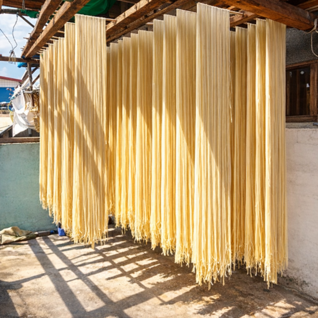 맑은 공기 속에서 천일건조시키는 독특한 방식이 특징인 지역 소면