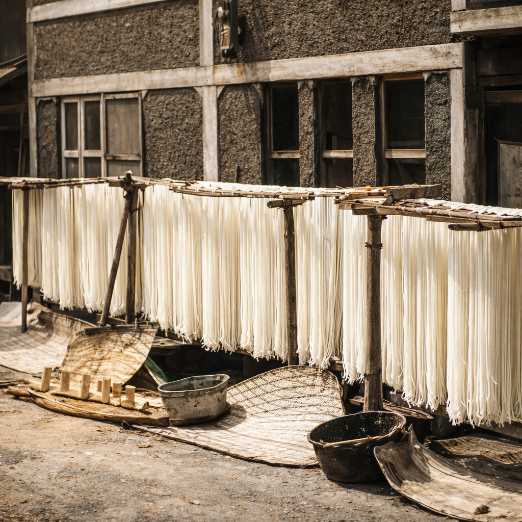 현대 제면 기술은 단순히 반죽을 많이 치대는 장치가 아니라, 수많은 실험 끝에 찾아낸 '좋은 소면의 조건'을 그대로 재현하는 장치입니다. 물과 밀가루 비율, 반죽 온도와 습도, 물을 나눠 넣는 '다가수숙성'까지 모두 장인이 손끝으로 느끼던 미세한 차이를 수치로 옮긴 결과입니다. |